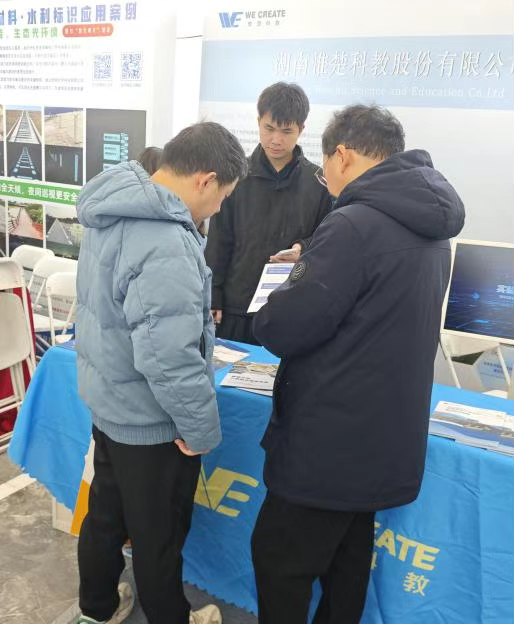 惟楚科教专属展台通过“成果陈列+定制化解读+产品画册展示”模式,全方位传递品牌实力。营销与技术团队组成专项小组,针对高校客户提供专业课程构建、实训平台搭建等全链条服务方案;为水利企业量身定制装备研发、标准化运维等合作方案。众多参会嘉宾对其成果积累与定制化服务能力高度认可,为后续合作奠定基础。